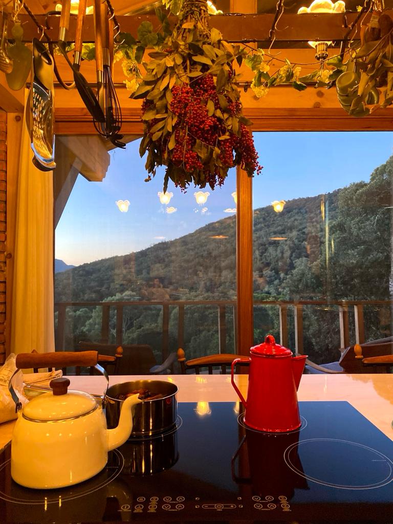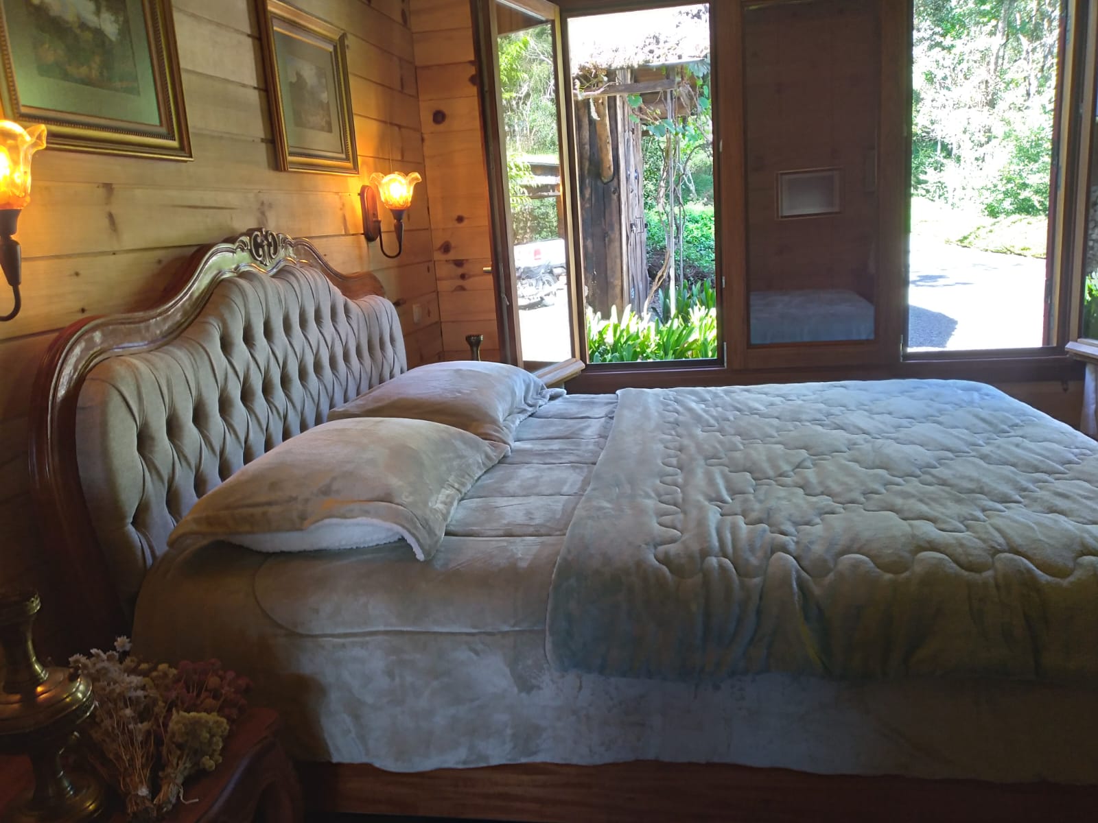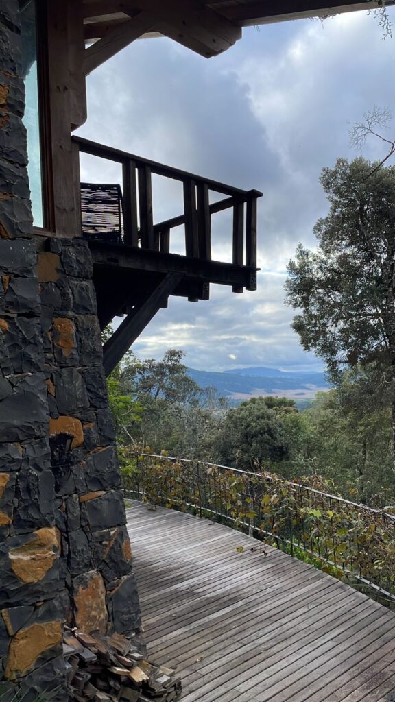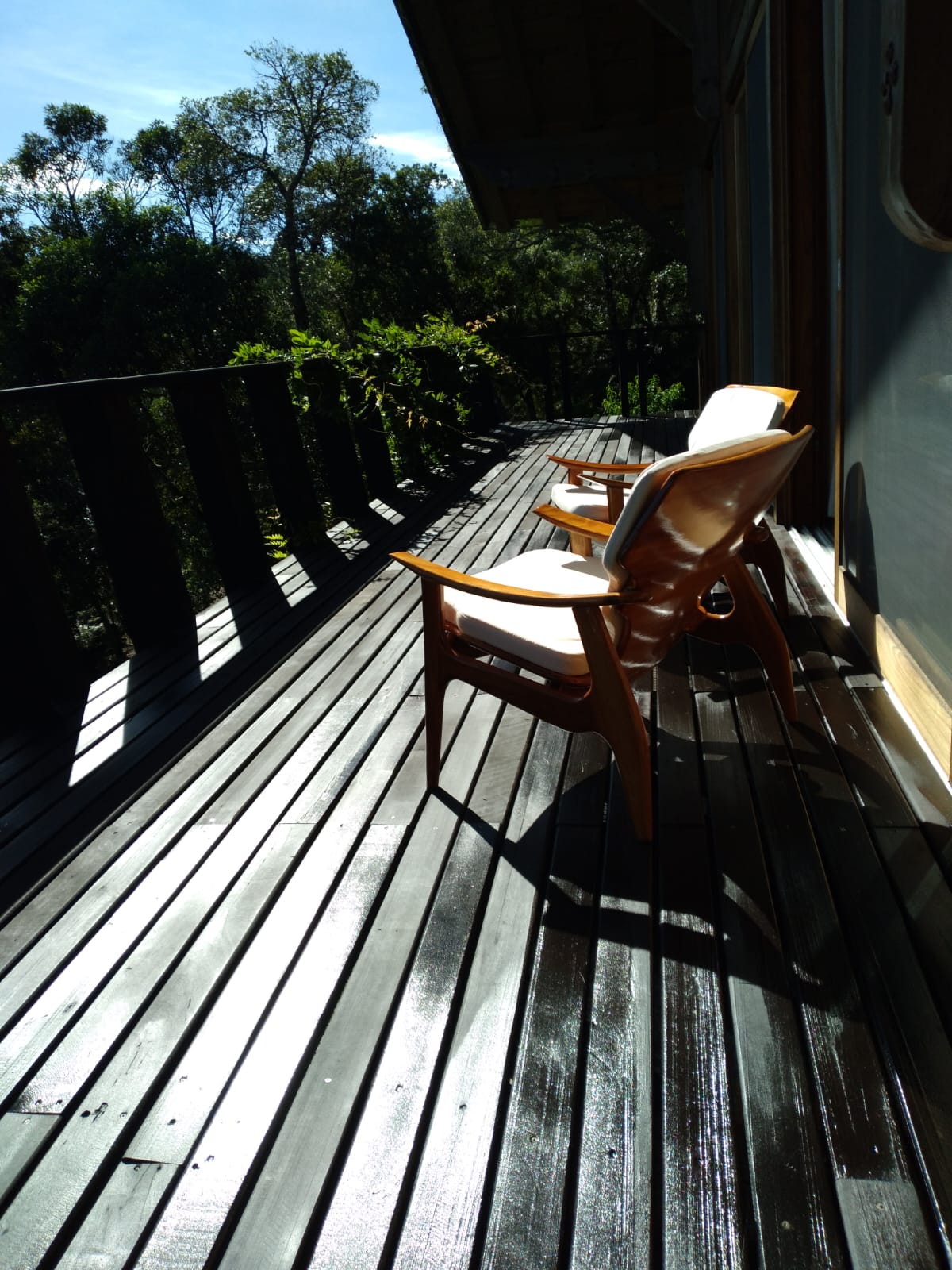 The suites are equipped with German wood heaters. An electro-hydraulic wood splitter makes it easier to split the wood from the remains of the native forest.
