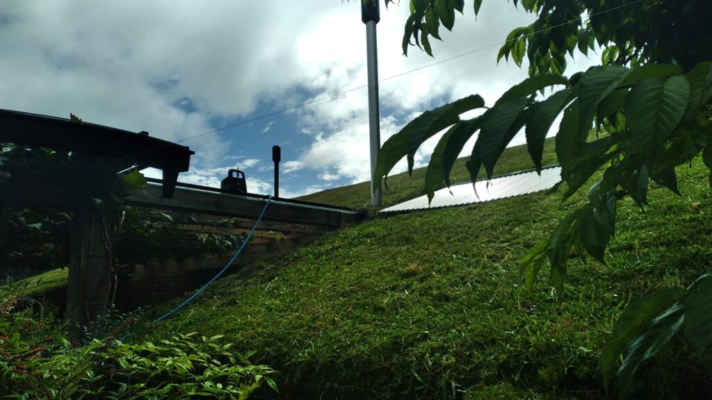 The house has two 5,000l tanks installed in the basement. A pressurizing pump supplies the two 1,200 l tanks installed in the attic. The hot water tank is connected to two solar collectors installed on the roof. In the event of prolonged lack of sunlight, a 7,500w resistor controlled by the control panel maintains the water temperature at 40*C (can be adjusted).