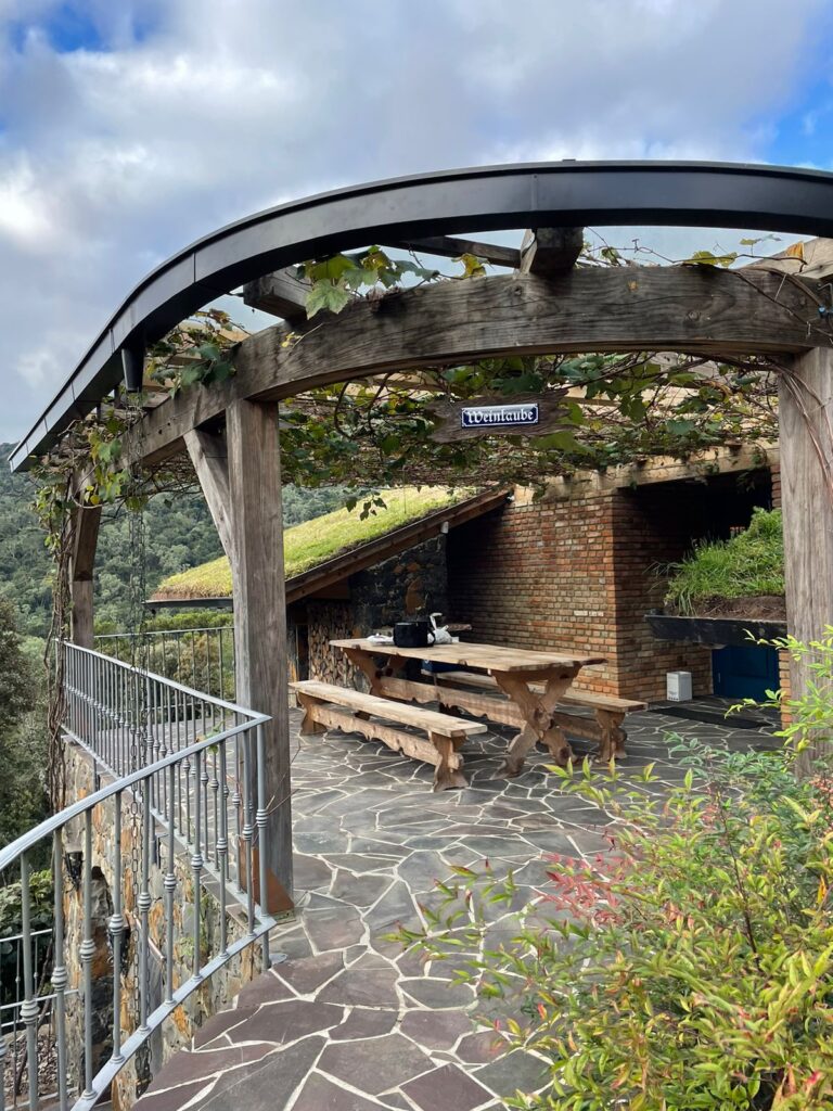 The residence has a total of 301,50 m2 of covered area, plus the 73.20 m2 verandas, a 56.90 m2 garage, the 12.00 m2 distillery ranch, and 8 0m2 of infrastructure areas. It was designed by the Pomerode architect Roseana Struck, a specialist in typical German buildings. The total condominium area is 27.843 m2.