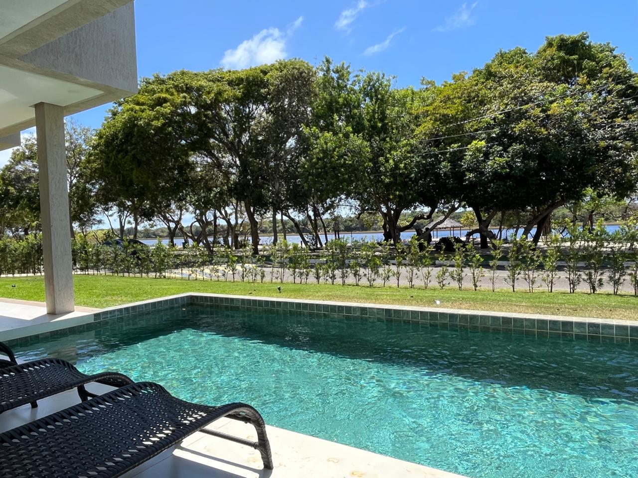 Modern Villa Guarajuba: 584 m² land, 410 m² constructed area, 6 suites, garden, high-level condo infrastructure, swimming pool