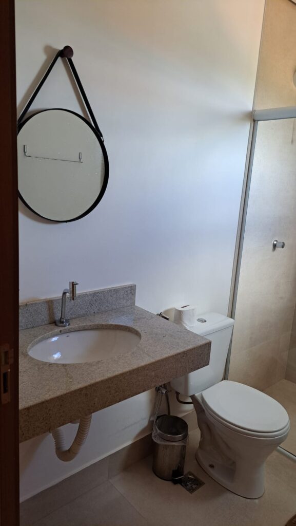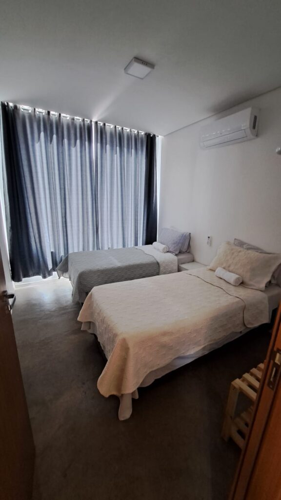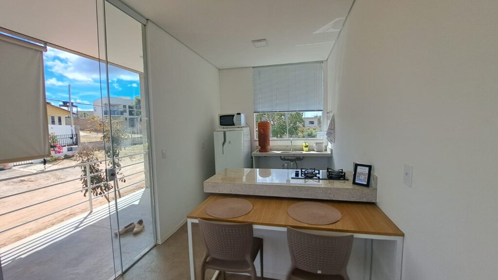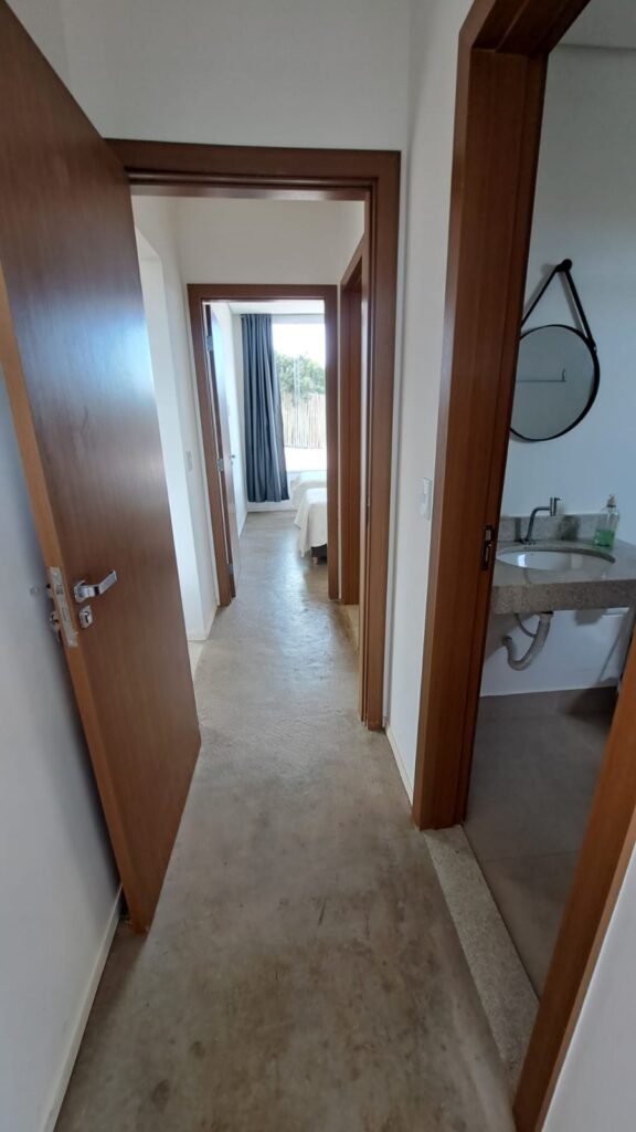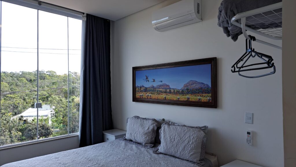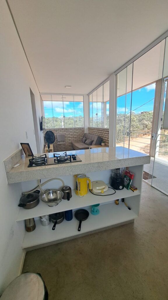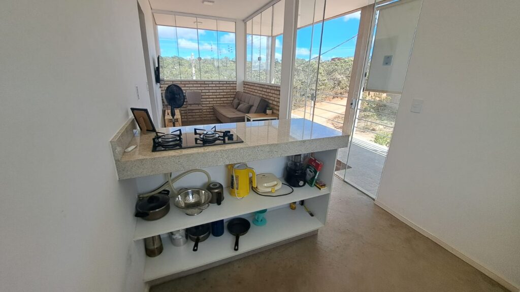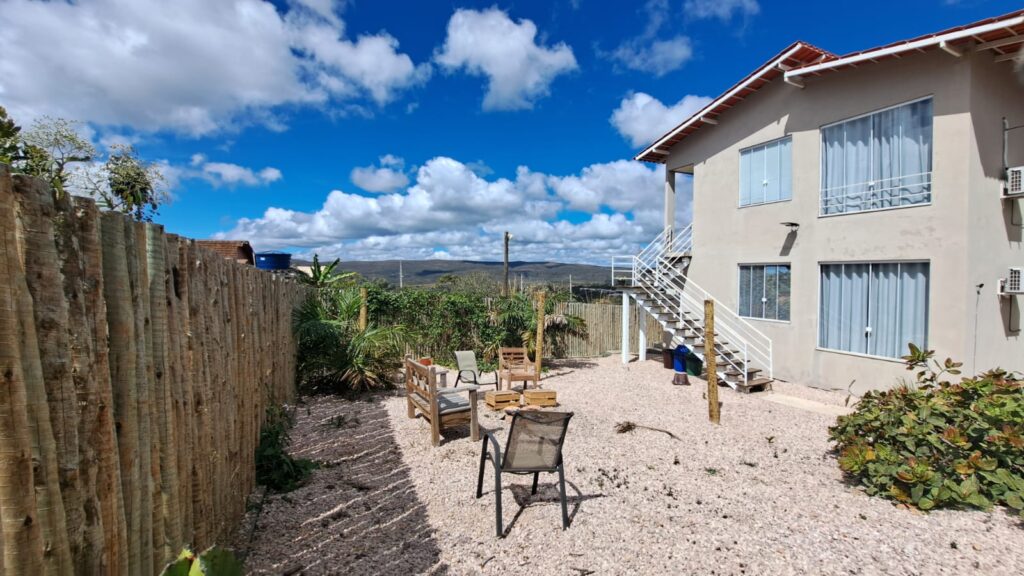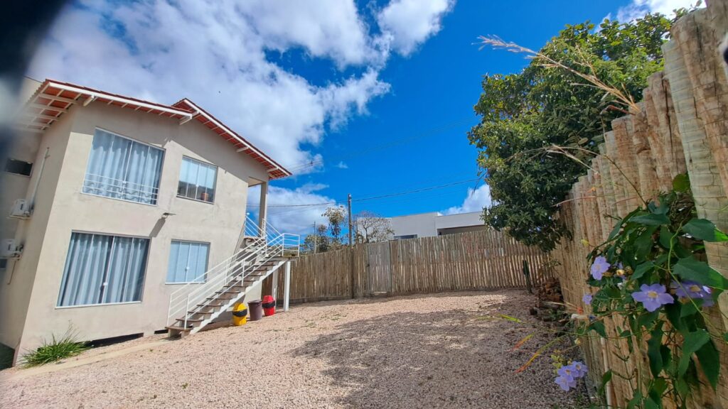 The property, located in the Eldorado district of Alto Paraíso, consists of Two buildings, each with two apartments, totaling four apartments: two on the ground floor and two on the first floor. Each apartment has a suite (queen bed and bathroom) and one bedroom (two single beds and one bathroom). Furthermore there is an Outdoor space for a fire pit, hammocks, and plenty of room for other décor.