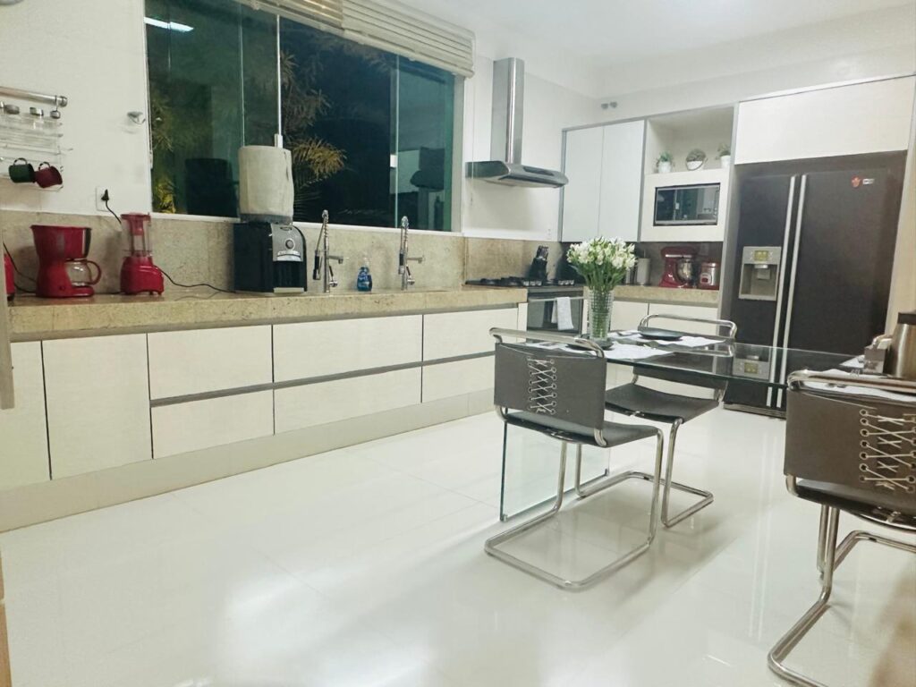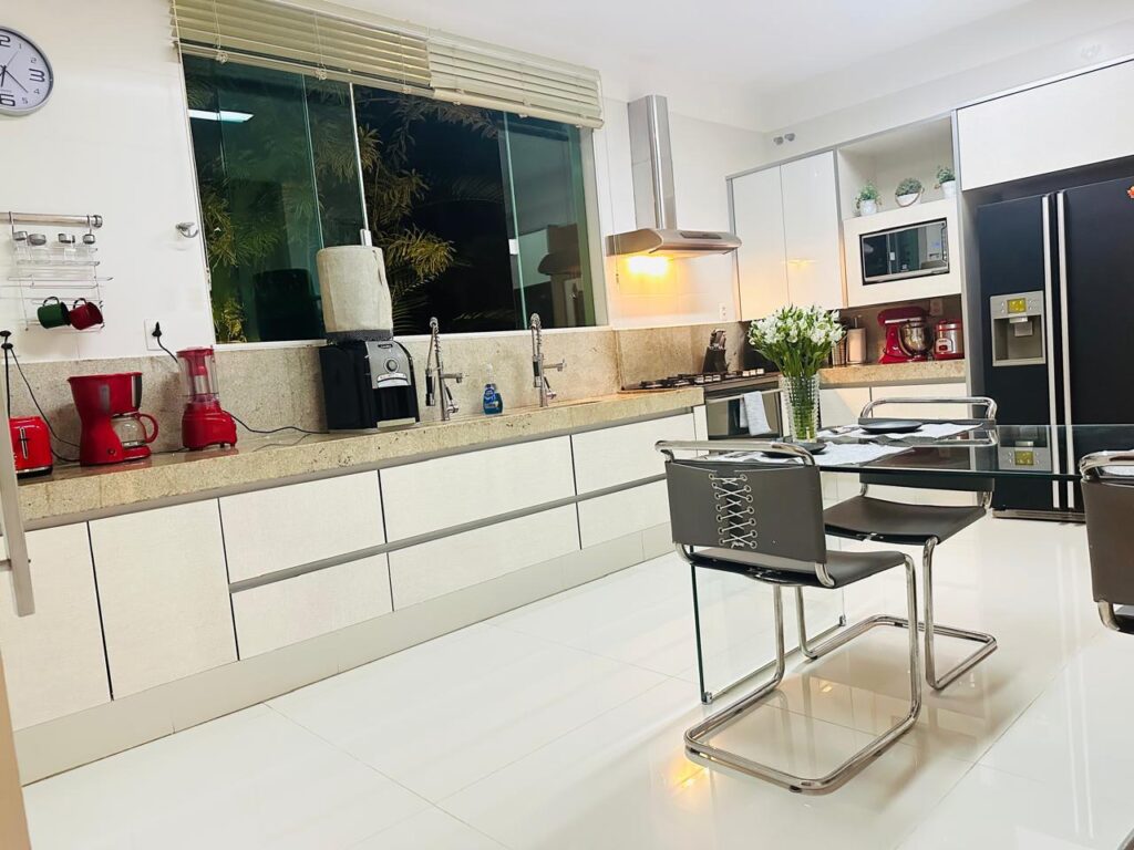 The house has 5 bedrooms, 4 with suites, 5 bathrooms with showers and 1 toilet, separate area in front of the barbecue pool, gym, garage for 5 cars. Solar energy, solar heater, water reserve well, well for the automated irrigation system.