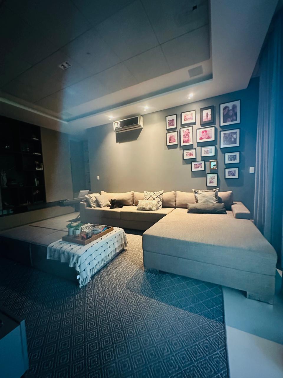 The home features an Olympic-size swimming pool, private beach access, and a state-of-the-art security system with facial recognition entry to the gated community, ensuring complete safety and peace of mind 24 hours a day.