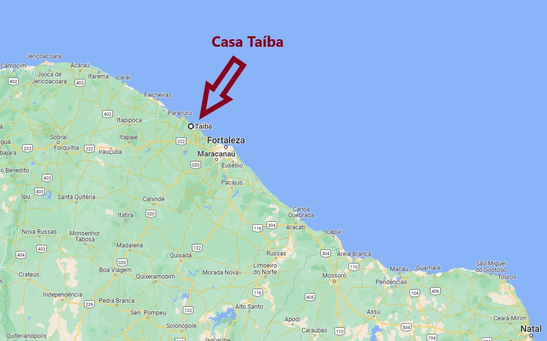 Taíba Beach is a beach in the Brazilian state of Ceará. It is located 76 km from Fortaleza Airport. Taíba is a charming fishing village with growing infrastructure, known for its paradisiacal beaches, ideal for water sports such as surfing, kitesurfing, wingfoiling, and windsurfing. In fact, several international championships are held on this beach.