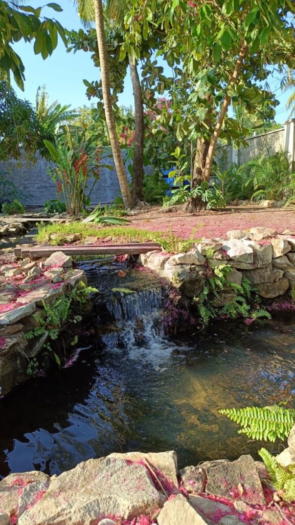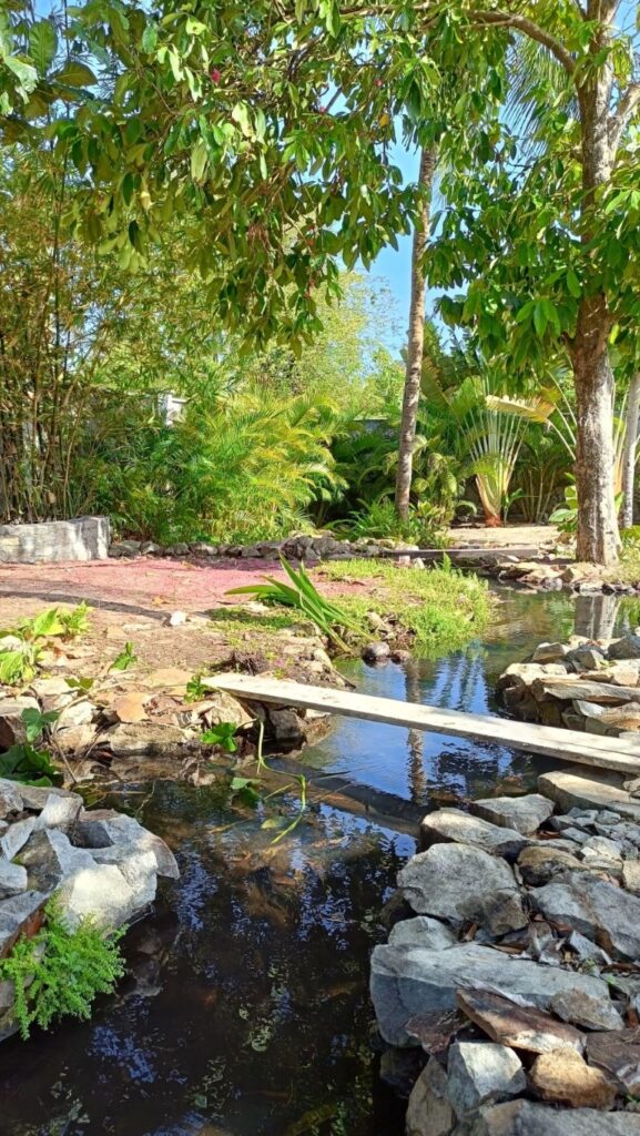 Area: 840 m² Stream with small waterfall, Fruit trees, a garden area and an irrigation system