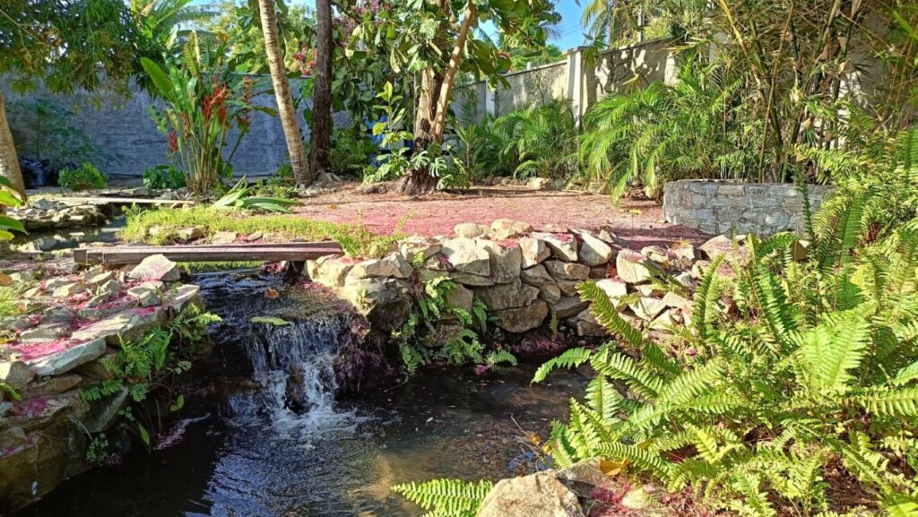 This beautiful plot combines tranquility, nature and an excellent location. A stream with a small waterfall adds a special charm to the property. Fruit trees, tropical plants and a well-maintained garden complete the scenery. The complete deck is perfect for relaxing and enjoying unique moments. Ideal for building your dream home, a charming inn or a private retreat.