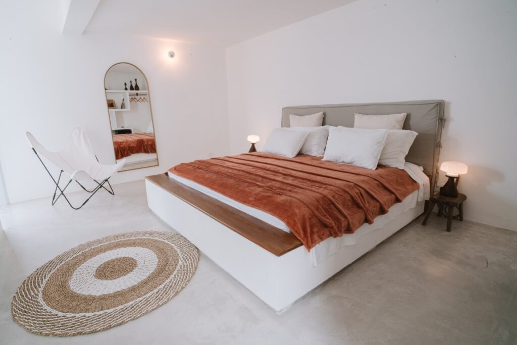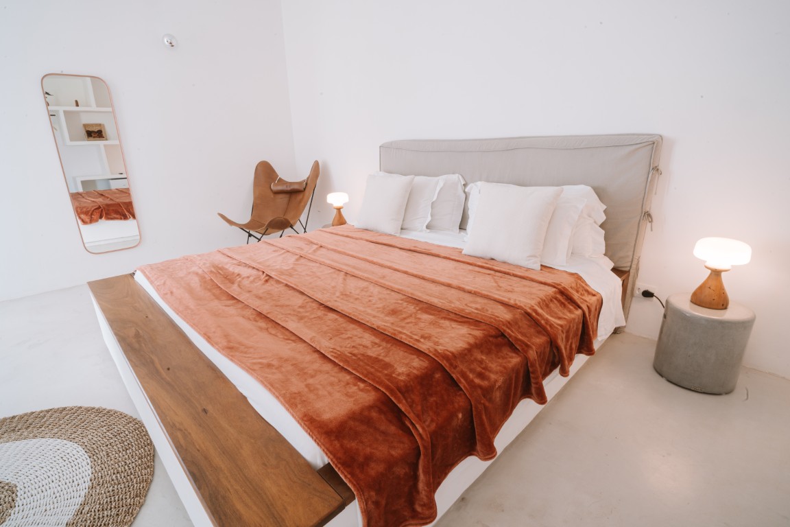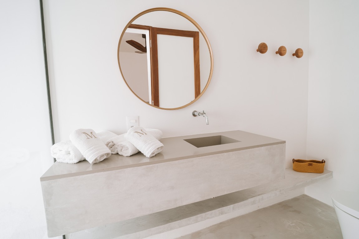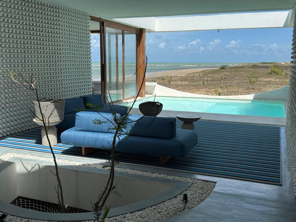 47 m² suite with a king-size bed and an ocean view balcony. A 43-inch Smart TV. Decorated predominantly in Muirapiranga wood. Maximum occupancy: 2 people.