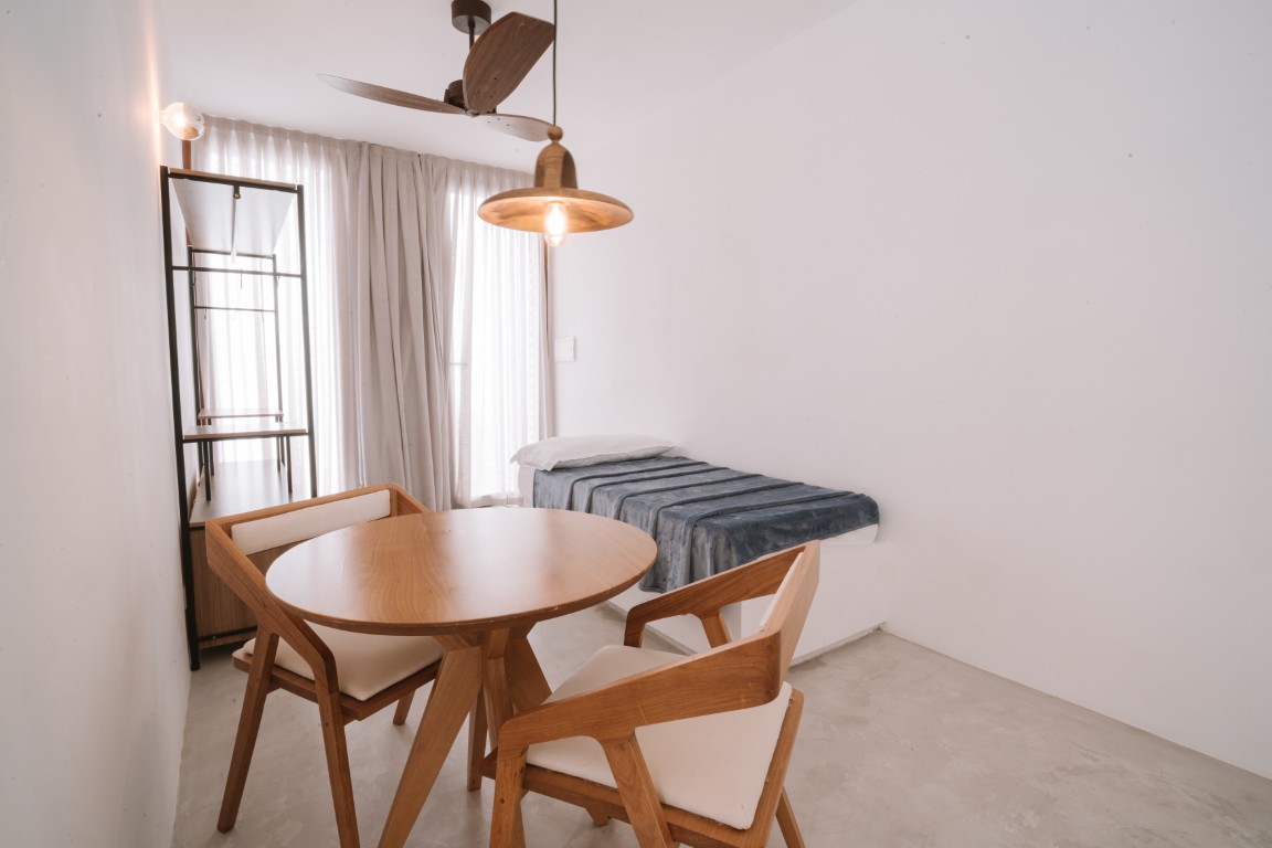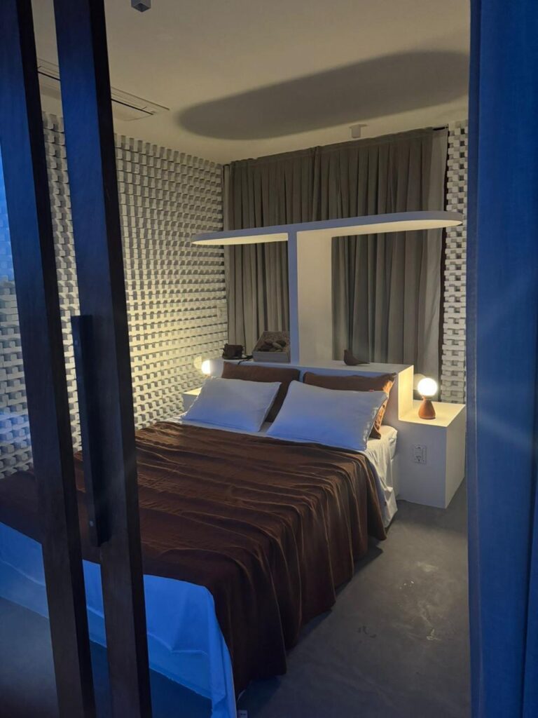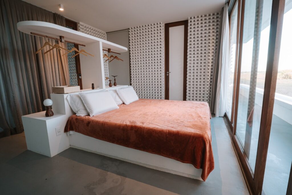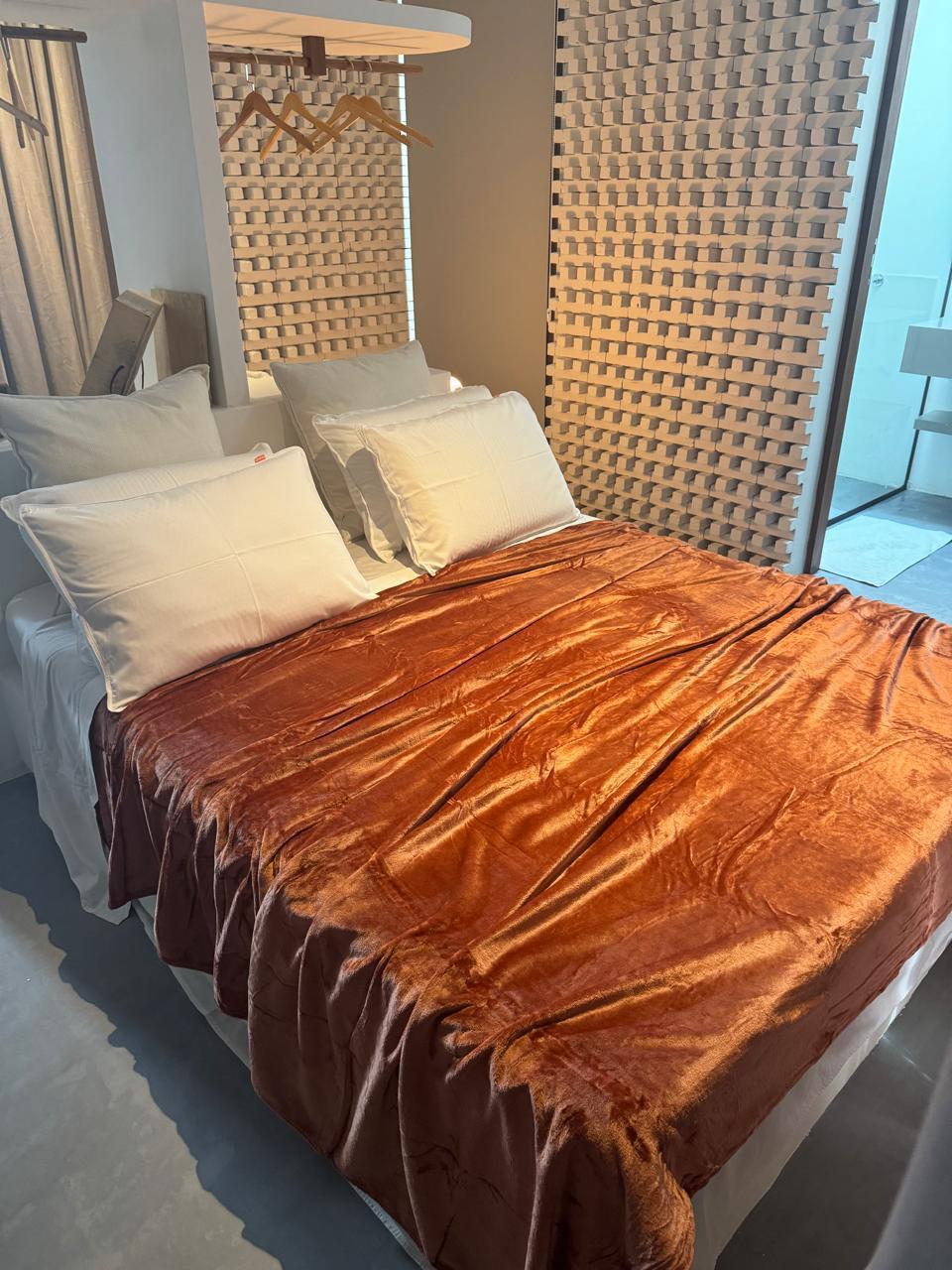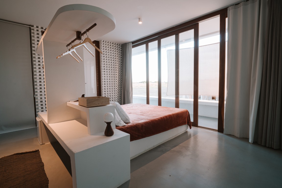 42 m² suite with a queen-size bed and a balcony. A 43-inch Smart TV. Decor predominantly in Garapeira wood. Maximum occupancy: 2 people.
