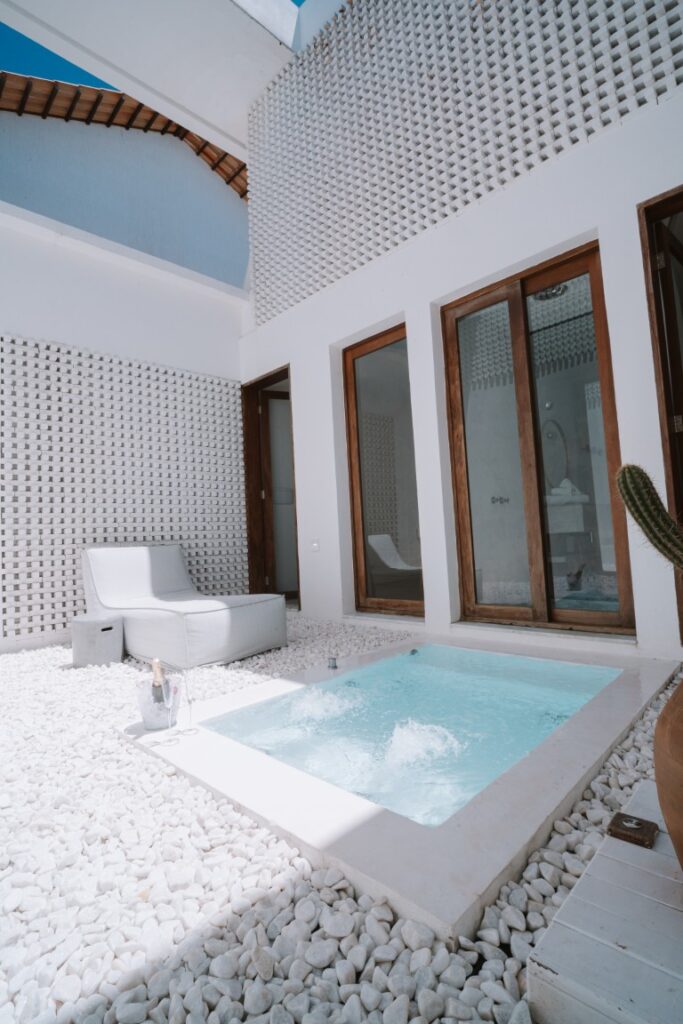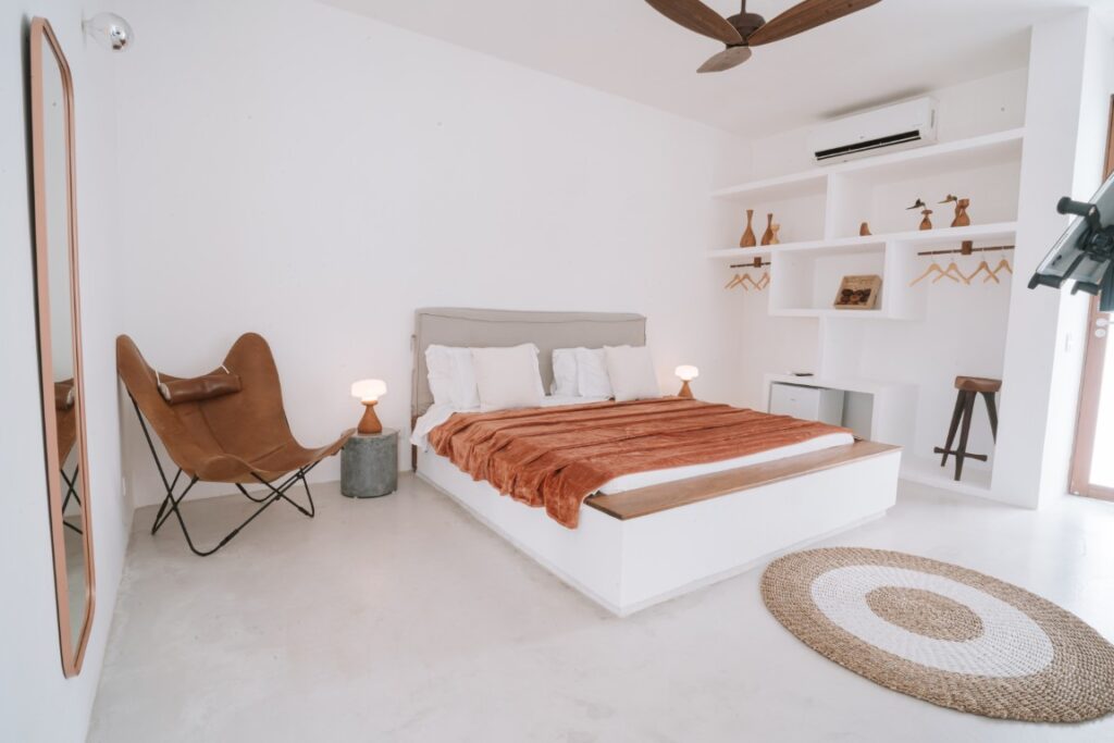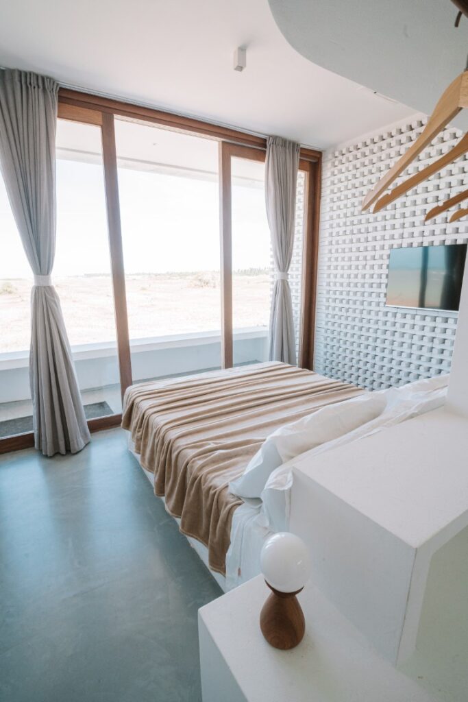 27 m² suite with a queen-size bed and ocean views. A 43-inch Smart TV. Decorated predominantly in Maracatiara wood. Maximum occupancy: 2 people.