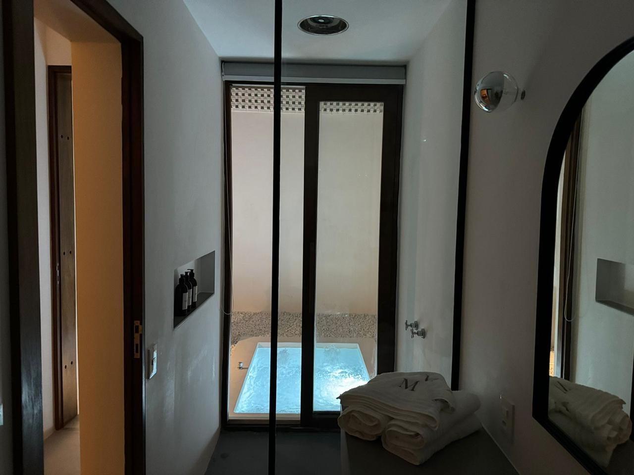 Suite measuring 65 m², equipped with a king-size bed, a 58-inch Smart TV, and a whirlpool tub. Decorated predominantly in Peroba Rosa wood. Maximum occupancy: 2 people.