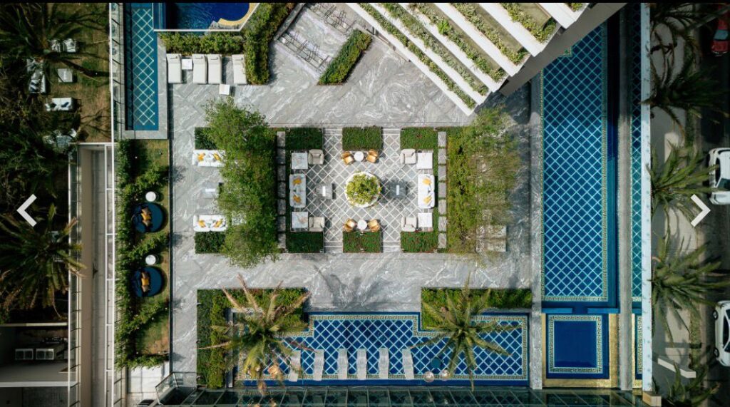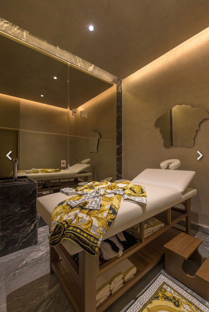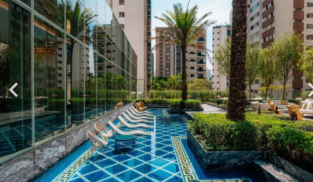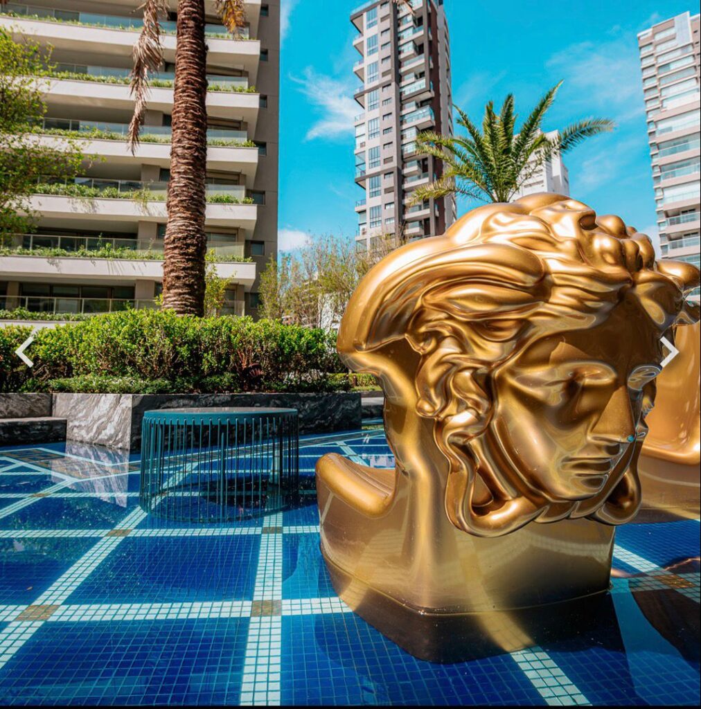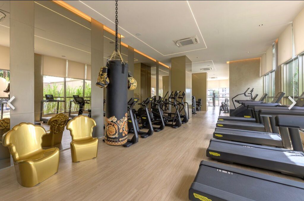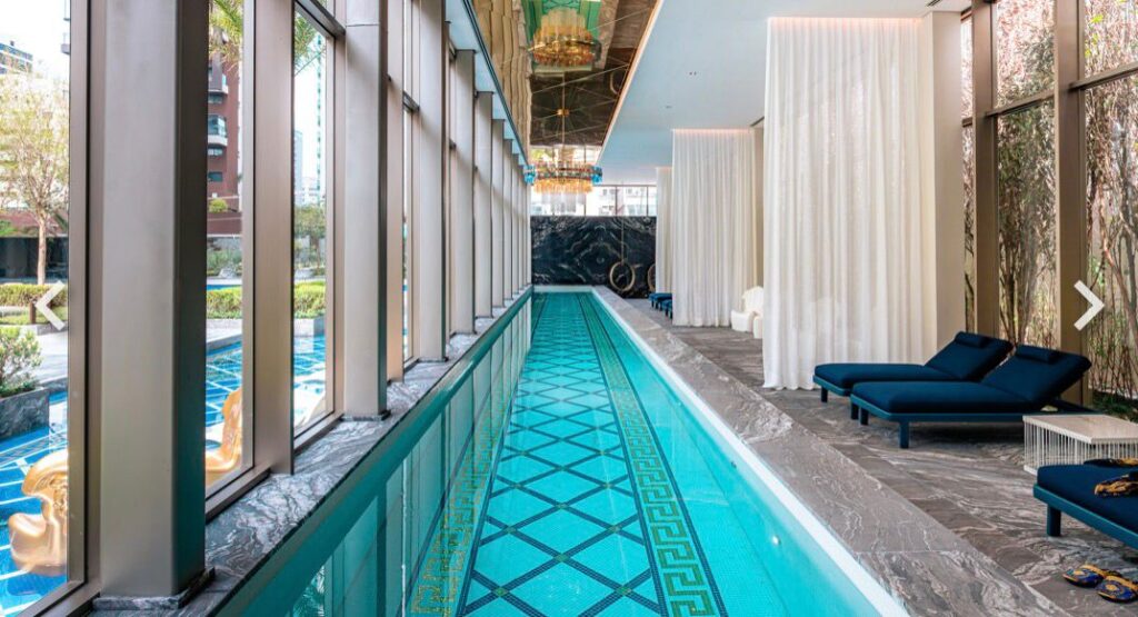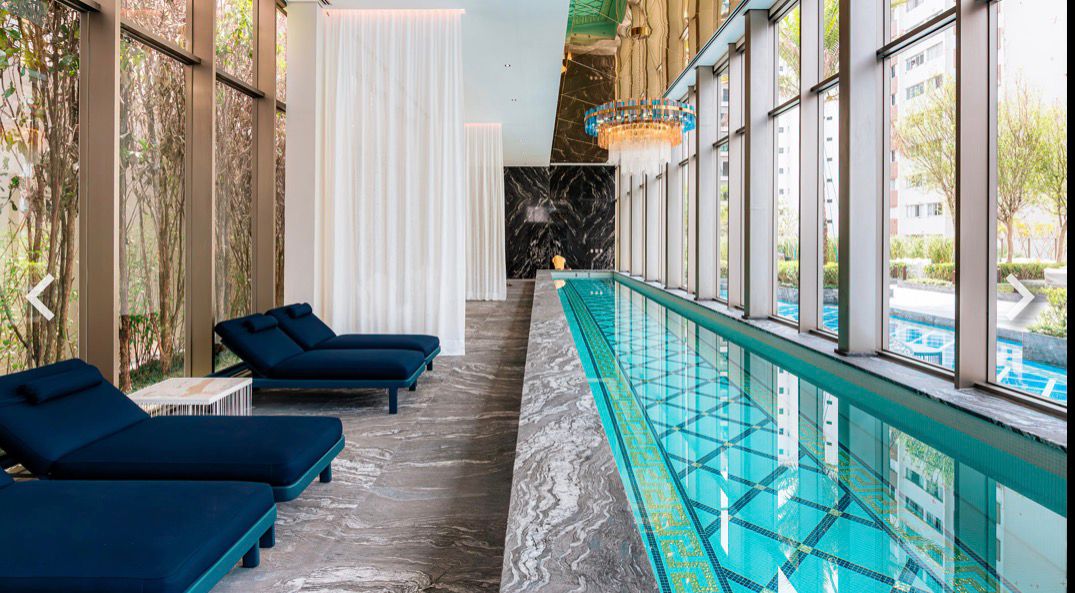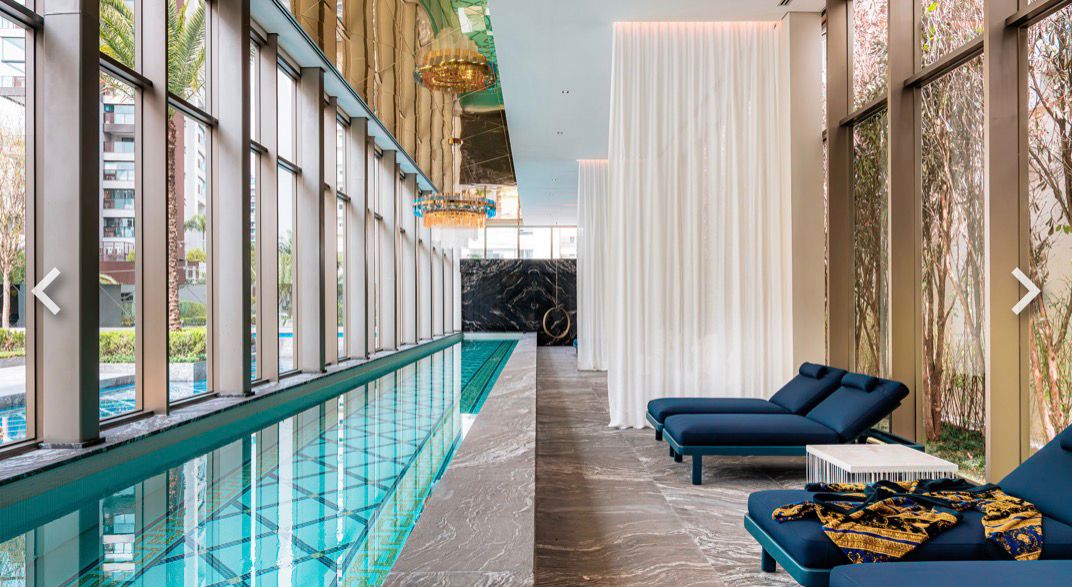 Ready-to-move-in development, with the Milano Lifestyle by Versace Home signature, architecture by Aflalo, interior design by Chris Silveira, and landscaping by Bennedito Abbud. The condominium offers a party room, indoor and outdoor pools, playground, playroom, fitness center, outdoor lounge, spa, dry sauna, steam room, and lobby.